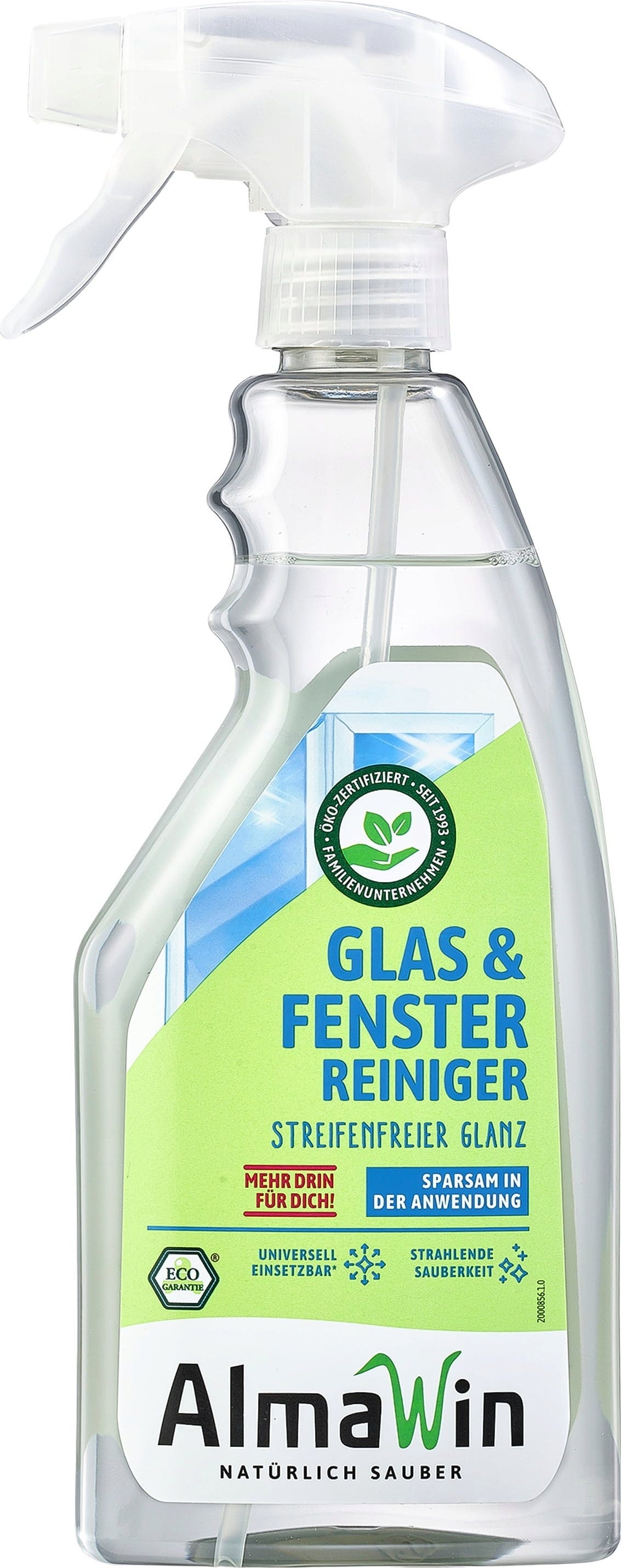 Optimalni spoj tenzida, alkohola i vode učinkovito uklanja dosadnu prljavštinu. Ne ostavlja tragove čišćenja. Ovo sredstvo za čišćenje stakla i prozora također se može koristiti i za druge perive površine i plastični namještaj.