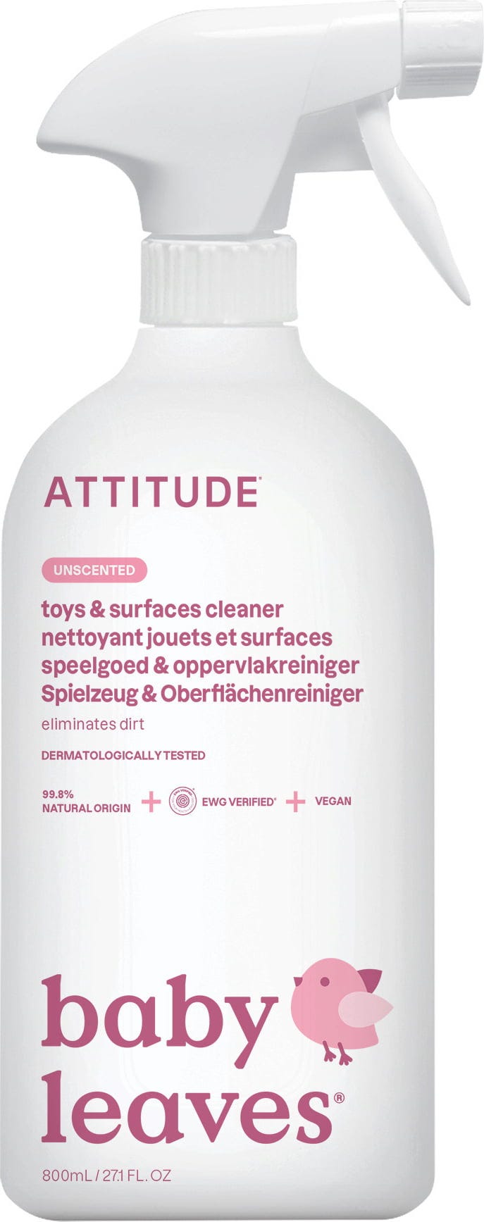 ATTITUDE Toy Cleaner ne sadrži kemikalije koje mogu biti štetne za djecu. Ne sadrži mirise, hipoalergen je i može se koristiti i na glatkim površinama.