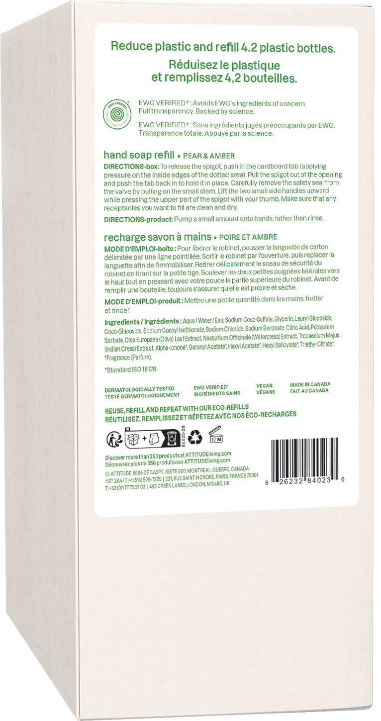 Hipoalergenska formulacija ovog sapuna za ruke sadrži antioksidativni ekstrakt listova masline koji kožu opskrbljuje vlagom, dok blagi biljni tenzidi nježno pročišćavaju. Miris s tragovima kruške i đumbira posebno je ugodan.