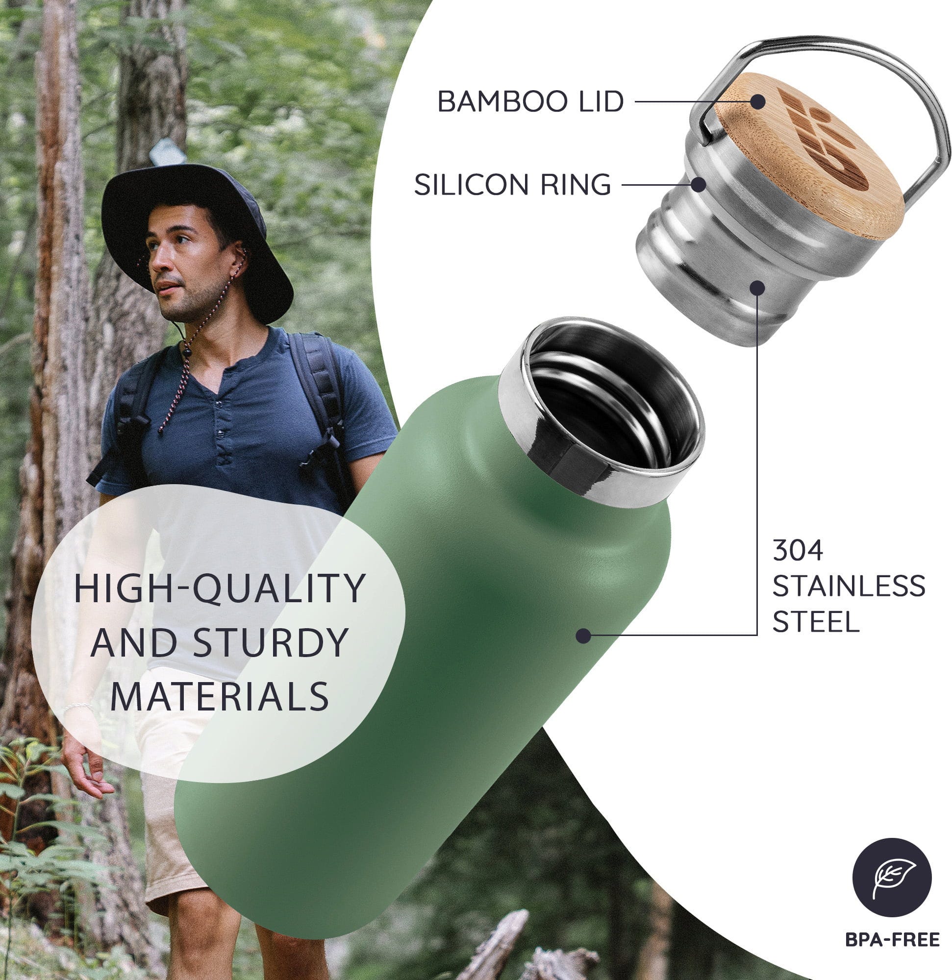 Bambaw Termos boca od nehrđajućeg čelika 750 ml, Sage Green