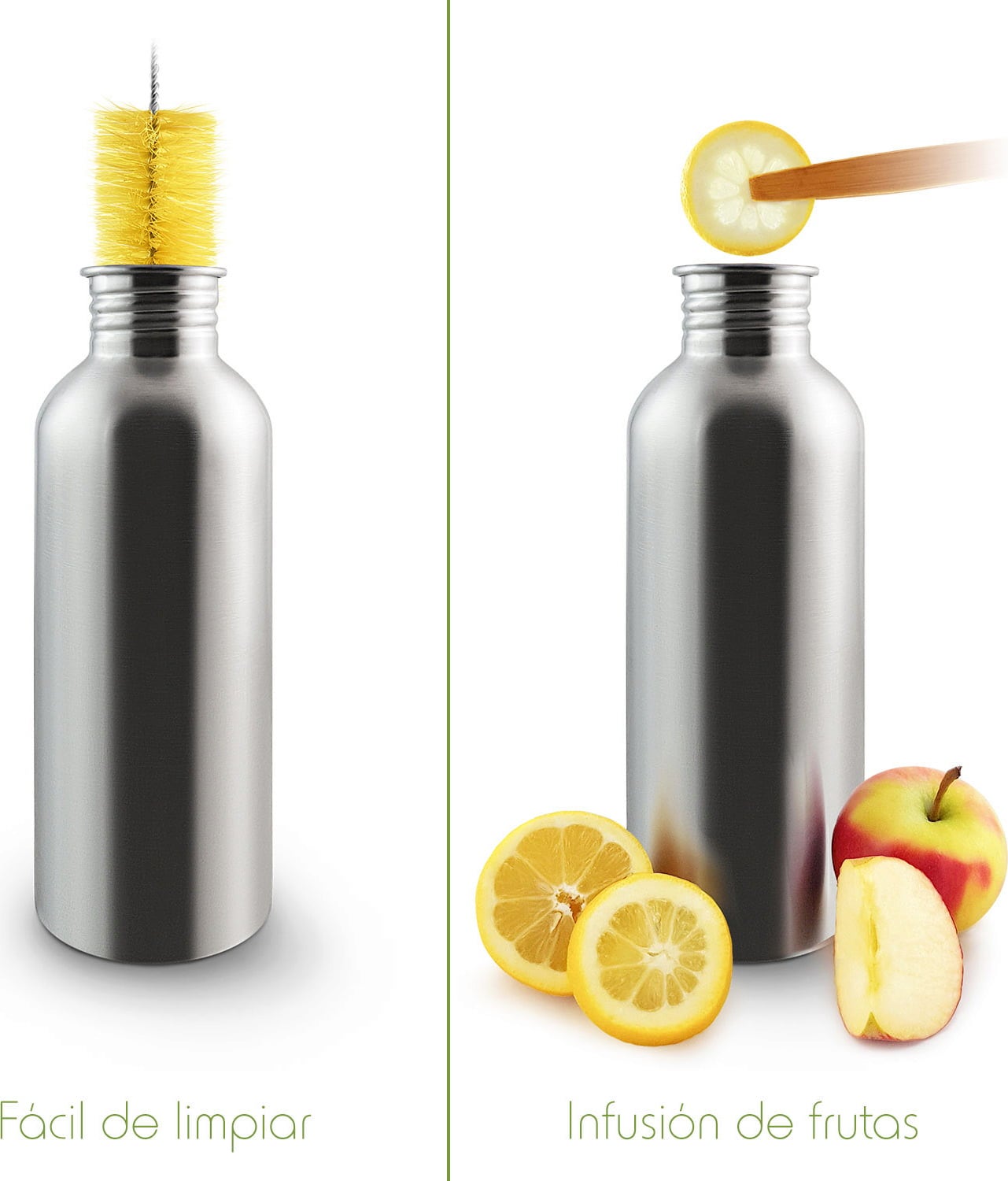 Ova nepropusna boca savršen je pratitelj u školi, poslu, planinarenju ili drugim avanturama. Njen jednostavan, suvremeni dizajn pogađa gotovo svaki ukus: tijelo boce izrađeno od nehrđajućeg čelika zaokruženo je poklopcem od bambusa. Bočica ne sadrži BPA ili druge štetne kemikalije. Nakon upotrebe boca se jednostavno očisti četkom za boce.