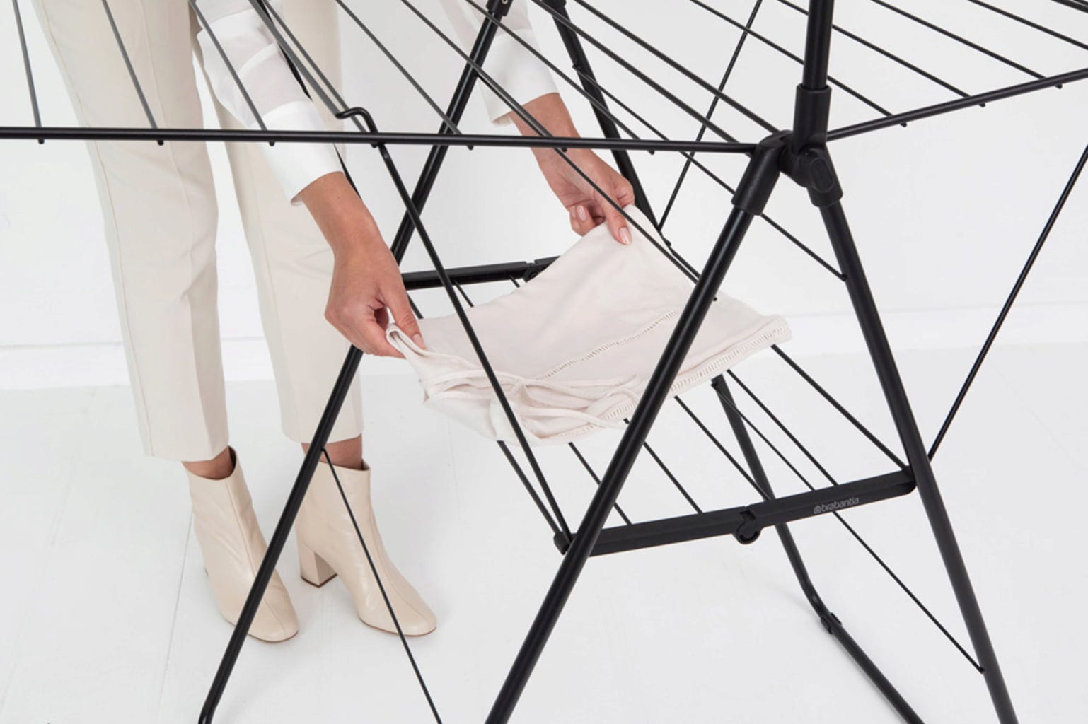 Pripremite rublje! Kvalitetno sušilo za rublje od dugovječnog čelika oduševljava ne samo svojom prostranošću, već prvenstveno svojim pametnim dizajnom s brojnim praktičnim i funkcionalnim detaljima. Nudi do 25 metara prostora za male i velike komade rublja, iznimno je fleksibilno zahvaljujući podesivim krilima, jednostavno se sklapa i štedi prostor pri pohrani.