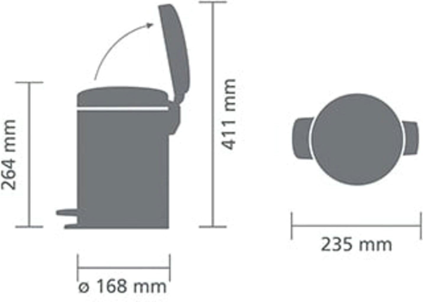 Brabantia Kanta za smeće s pedalom Newicon 3 L s plastičnim unutarnjim dijelom, Confident Grey