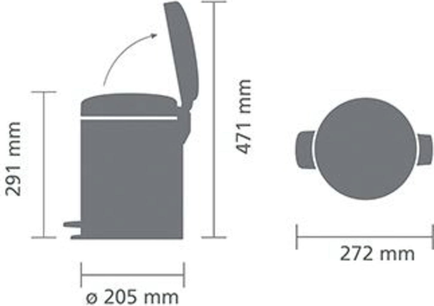 - dubina: (uklj. pedalu): 27,2 cm, promjer: 20,5 cm, visina: 29,1 cm