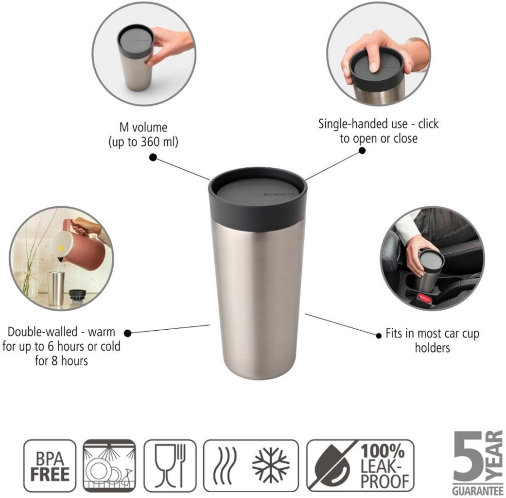 Brabantia Make & Take termo šalica, 0,36 l, Dark Grey