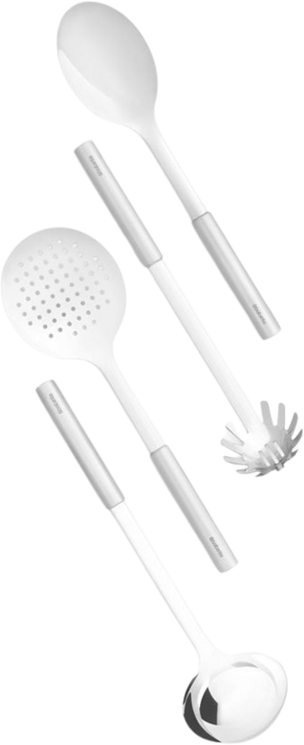 Najvažniji i najpopularniji kuhinjski pomagači u jednom setu - zaimača za juhu, žlica za povrće, žlica za špagete i žlica za obiranje. I već ste optimalno opremljeni u svojoj kuhinji.