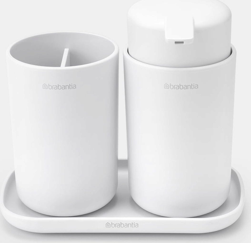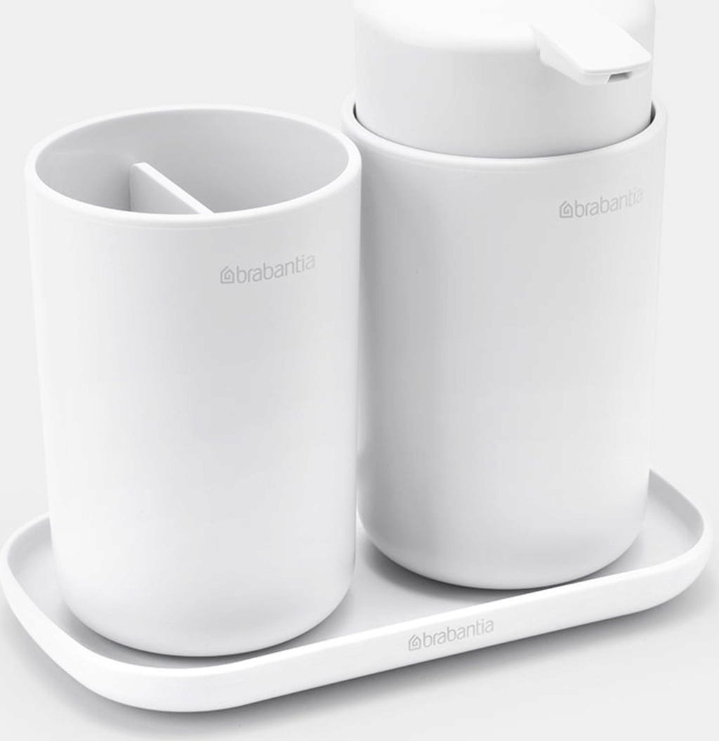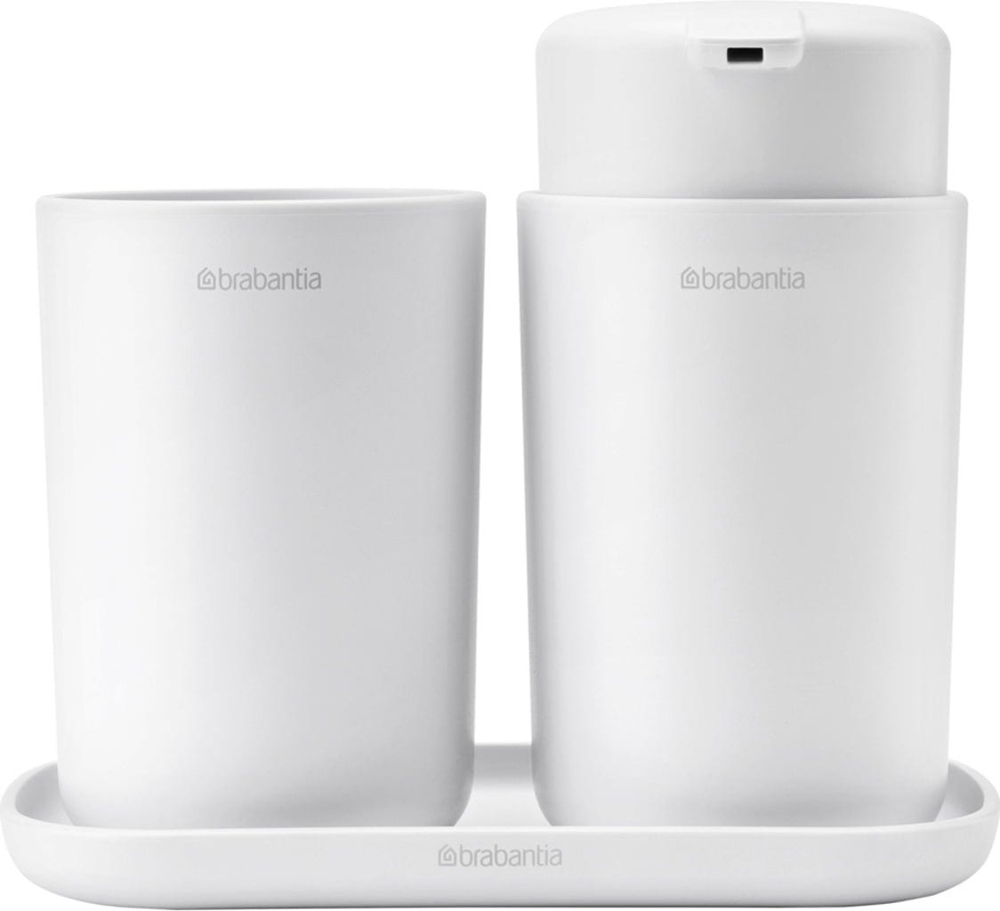 Moderan i praktičan kupaonski set sastoji se od dozatora sapuna, držača za četkice za zube i police. Optimalan za moderne i minimalističke stilove uređenja.