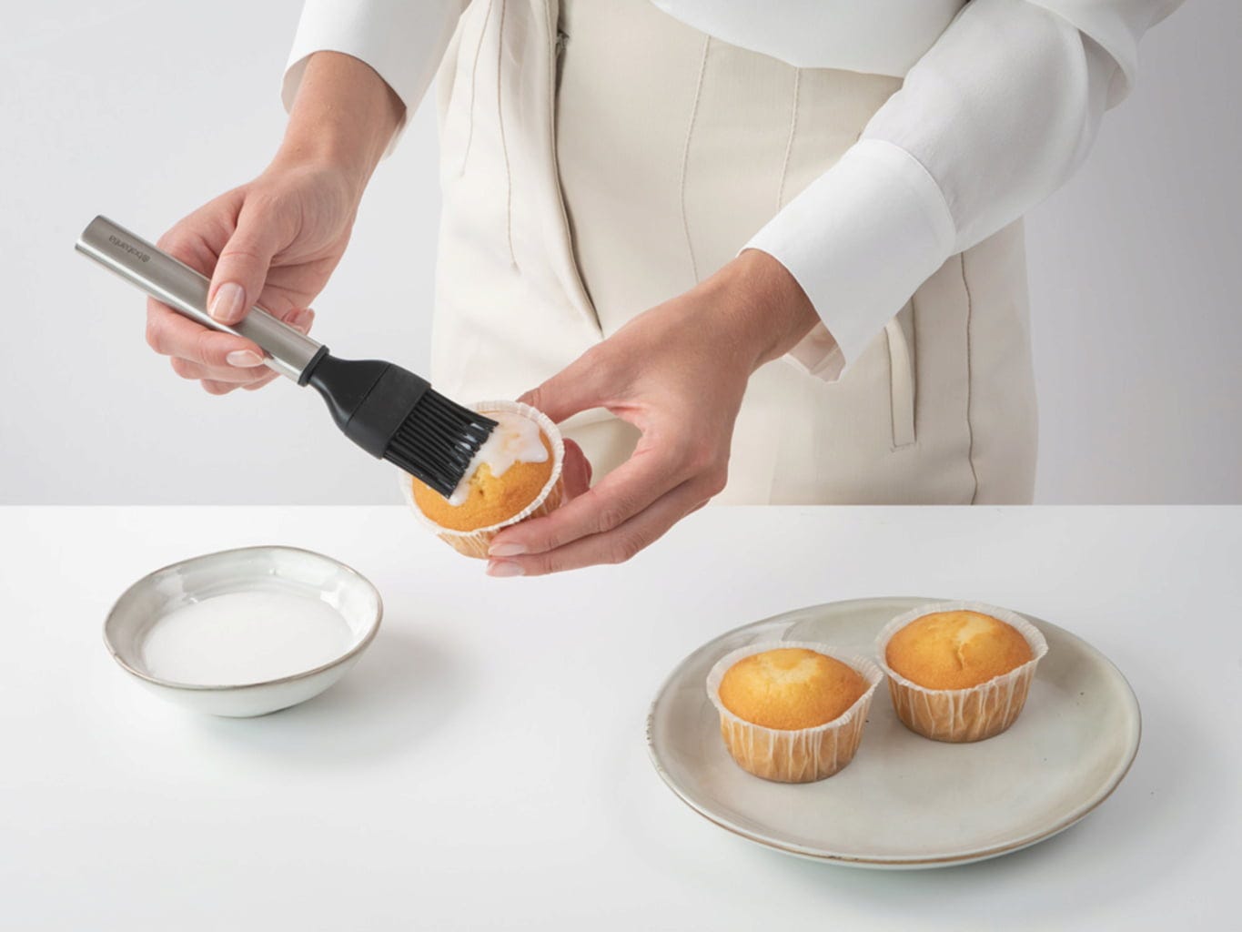 Svestrani kist za pecivo oduševljava ne samo svojim puristički elegantnim dizajnom s drškom od nehrđajućeg čelika, već ponajprije svojim izvrsnim materijalom i uporabnim svojstvima. Bilo da premazujete peciva, meso ili podmazujete kalup: duge silikonske dlačice osiguravaju lako i ravnomjerno raspoređivanje tekućina poput ulja, marinade itd. Ni premazivanje lonaca i tava s neprianjajućim premazom nije problem, jer je silikon otporan na toplinu i ne uzrokuje oštećenja.