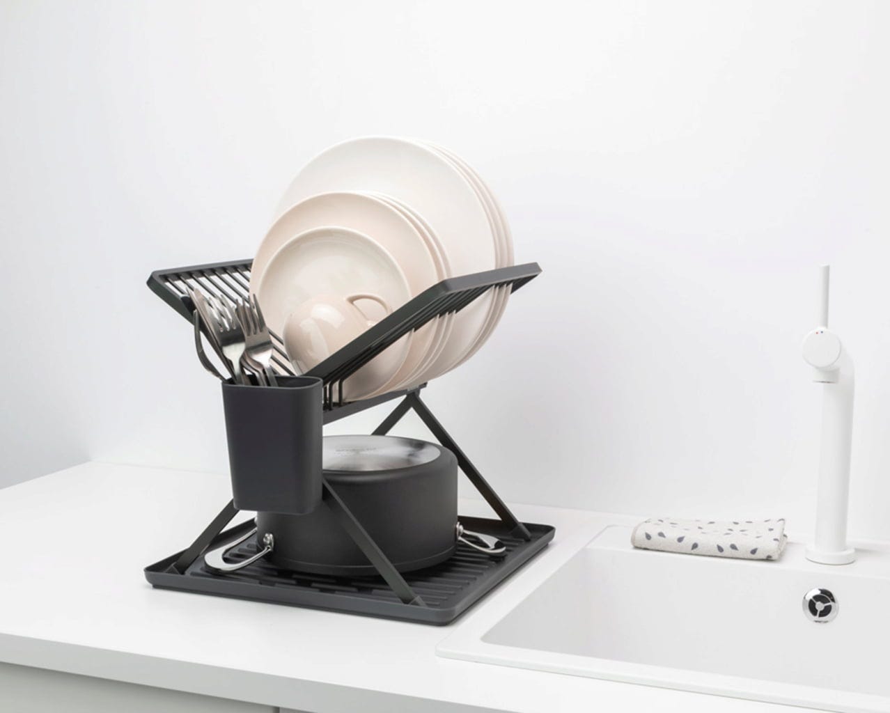 Zahvaljujući svom atraktivnom dizajnu, ovaj stilski stalak za sušenje posuđa gotovo je šteta sklopiti...