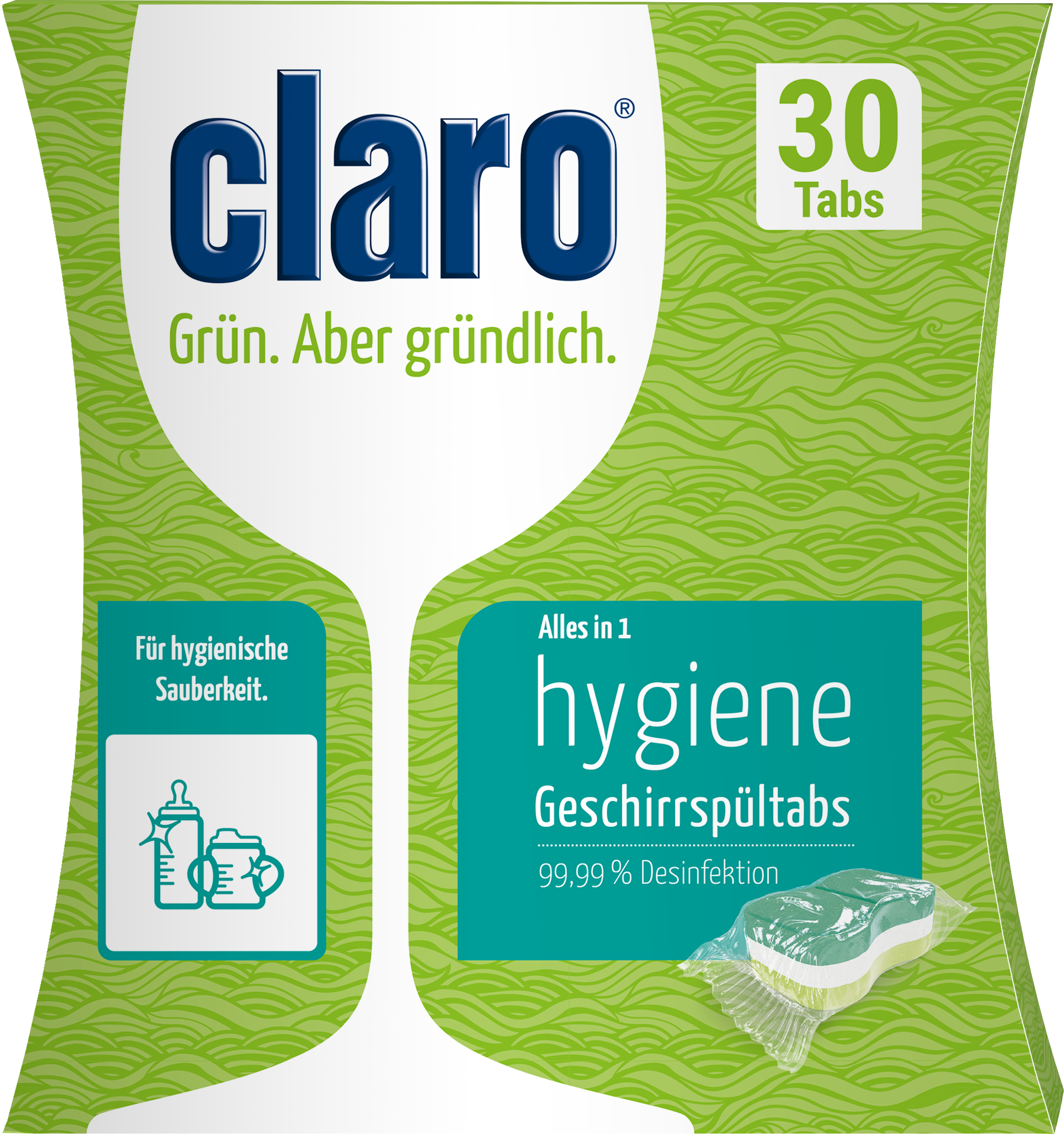 Claro higijenske tablete posebno su prikladne za osobe s alergijama jer uklanjaju 99,99% svih bakterija, virusa i gljivica. Dječje posuđe i bočice su također temeljito očišćene od ostataka i higijenski očišćene.Naravno, jezičci se mogu koristiti i za pranje klasičnog posuđa. Budući da su zamjene za sol i sredstvo za ispiranje već uključene, nije potrebno koristiti dodatne proizvode. Tablete razvijaju svoju punu učinkovitost čak i pri niskim temperaturama i impresioniraju svojom funkcijom protiv kamenca.