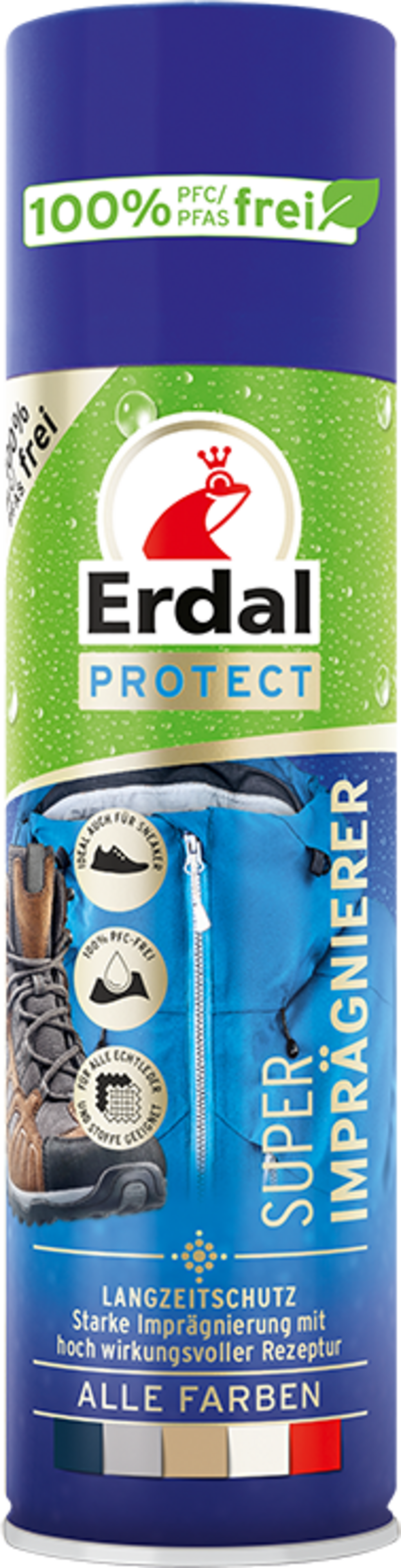 Već mala količina Super impregnatora Erdal osigurava snažnu impregnaciju vaše obuće i štiti je od vlage. Prikladan je za obuću od tekstila, glatke i brušene kože (antilop) te se može koristiti za sve boje. Njegova receptura u potpunosti je bez perfluoriranih i polifluoriranih kemikalija (PFC) te ne narušava funkcionalnost klimatskih membrana u obući.