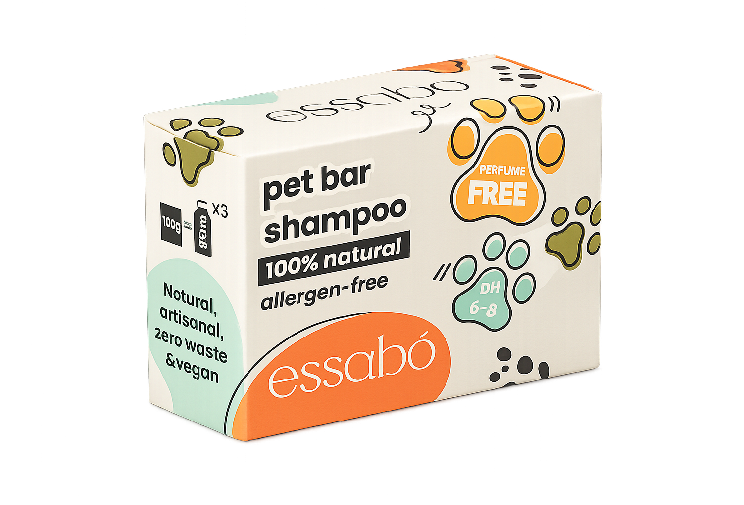 Priuštite svom četveronožnom suputniku njegu dlake koja u potpunosti poštuje prirodna svojstva kože i krzna! Kruti šampon za životinje marke essabó savršena je, ekološki prihvatljiva alternativa za sve koji ne žele raditi kompromise pri njezi pasa, mačaka ili konja. Budući da životinje imaju daleko istančaniji njuh od nas ljudi, ovaj ručno izrađeni sapun svjesno je napravljen bez parfema.