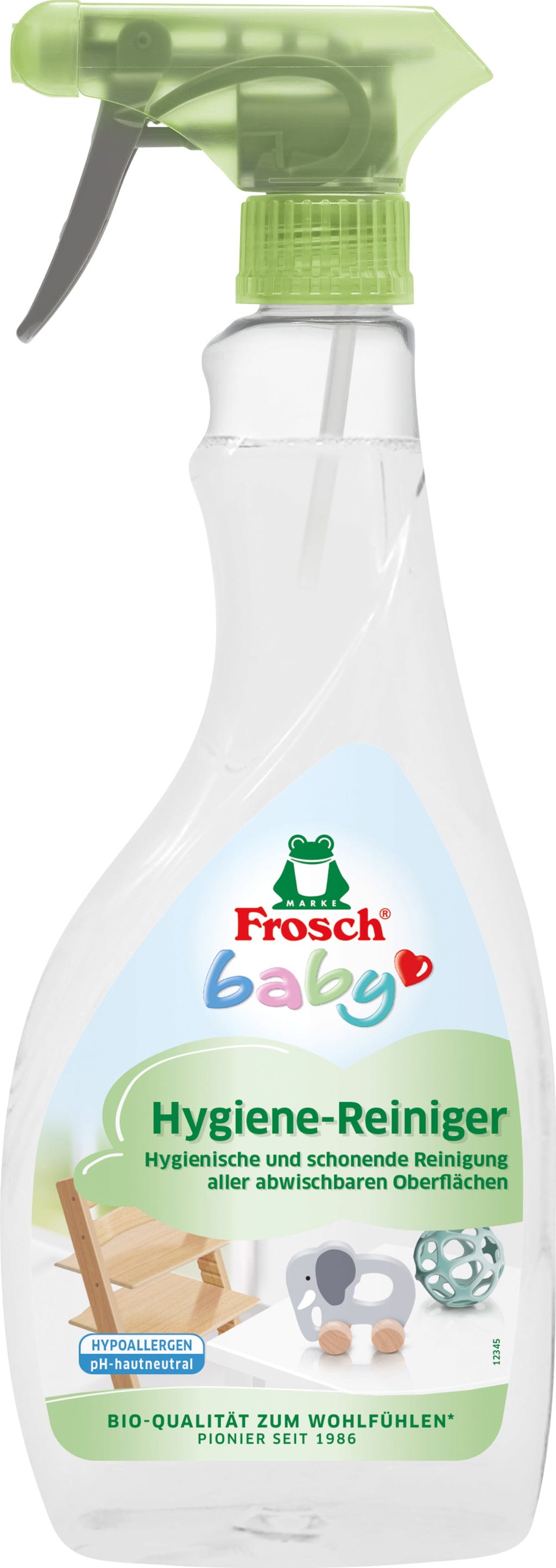 S higijenskim sredstvom za čišćenje dječjih stvari marke Frosch u tren oka ćete osigurati blistavu čistoću! Idealno je za uklanjanje ljepljivih ostataka i prljavštine s perivih igračaka, namještaja i svih vrsta perivih površina. Hipoalergena formulacija s provitaminom B5 ne sadrži dodana bojila, mirise ni konzervanse te omogućuje čišćenje bez ostataka. Osim toga, sastav ima pH vrijednost 5,5 koja je neutralna za kožu.