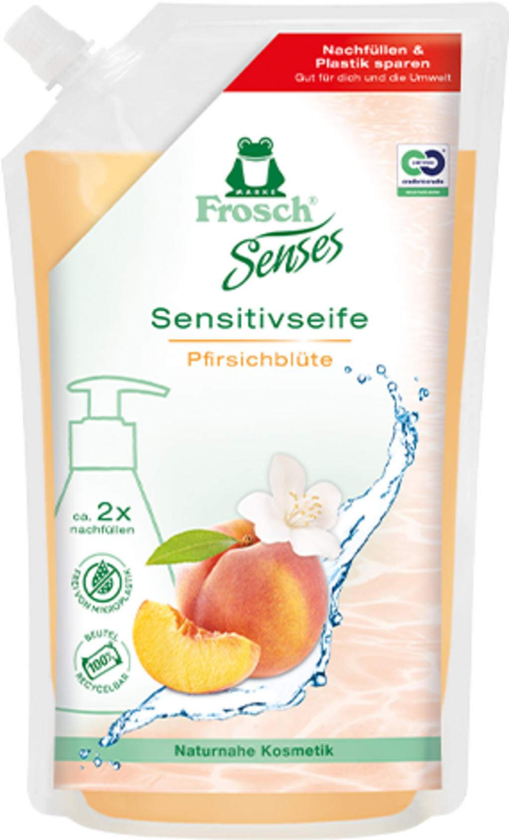 S ovom vrećicom za dopunu njegujućeg sapuna marke Frosch ne samo da ćete obnoviti svoje zalihe sapuna za ruke, već ćete i uštedjeti na ambalažnom otpadu! Vrećica za dopunu može se 100 % reciklirati i stvara manje otpada od kupnje novog plastičnog dozatora za sapun.