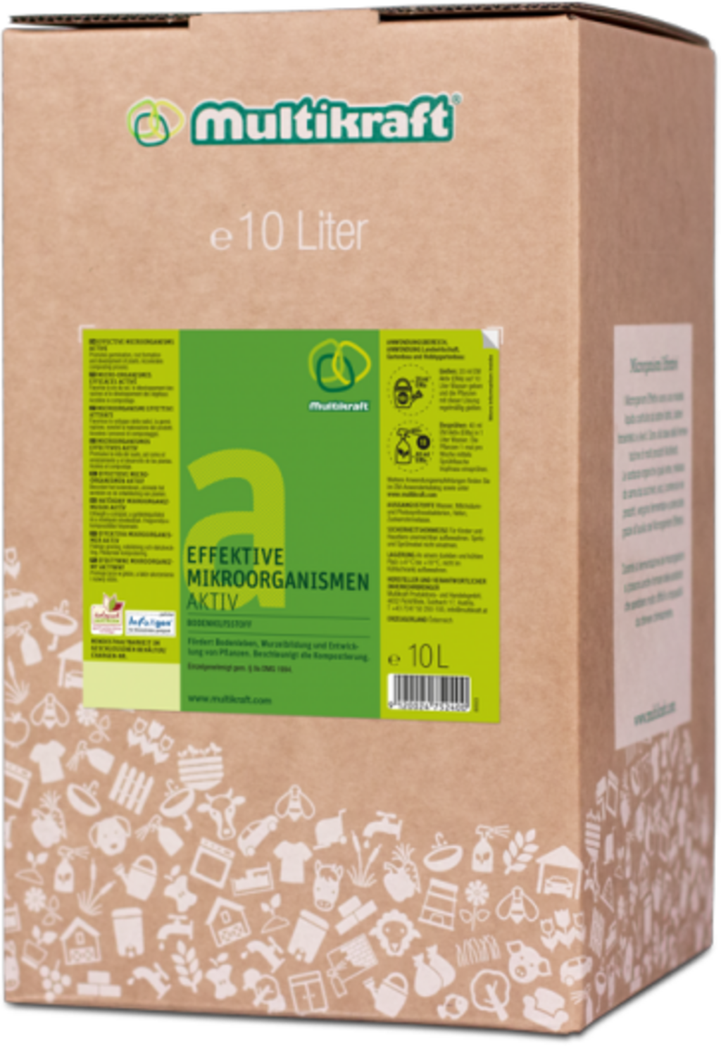 EM Aktiv je učinkovito pomoćno sredstvo koje sprječava procese truljenja i stvara okruženje u kojem prevladavaju regenerativni mikroorganizmi. Područje njegove primjene je raznoliko, može se koristiti za biljke u kući i vrtu, jer poboljšava kvalitetu tla i osigurava svestrano zdrave i snažne biljke. U kompostu potiče pretvorbu, dok u jezercima smanjuje alge i mulj.
