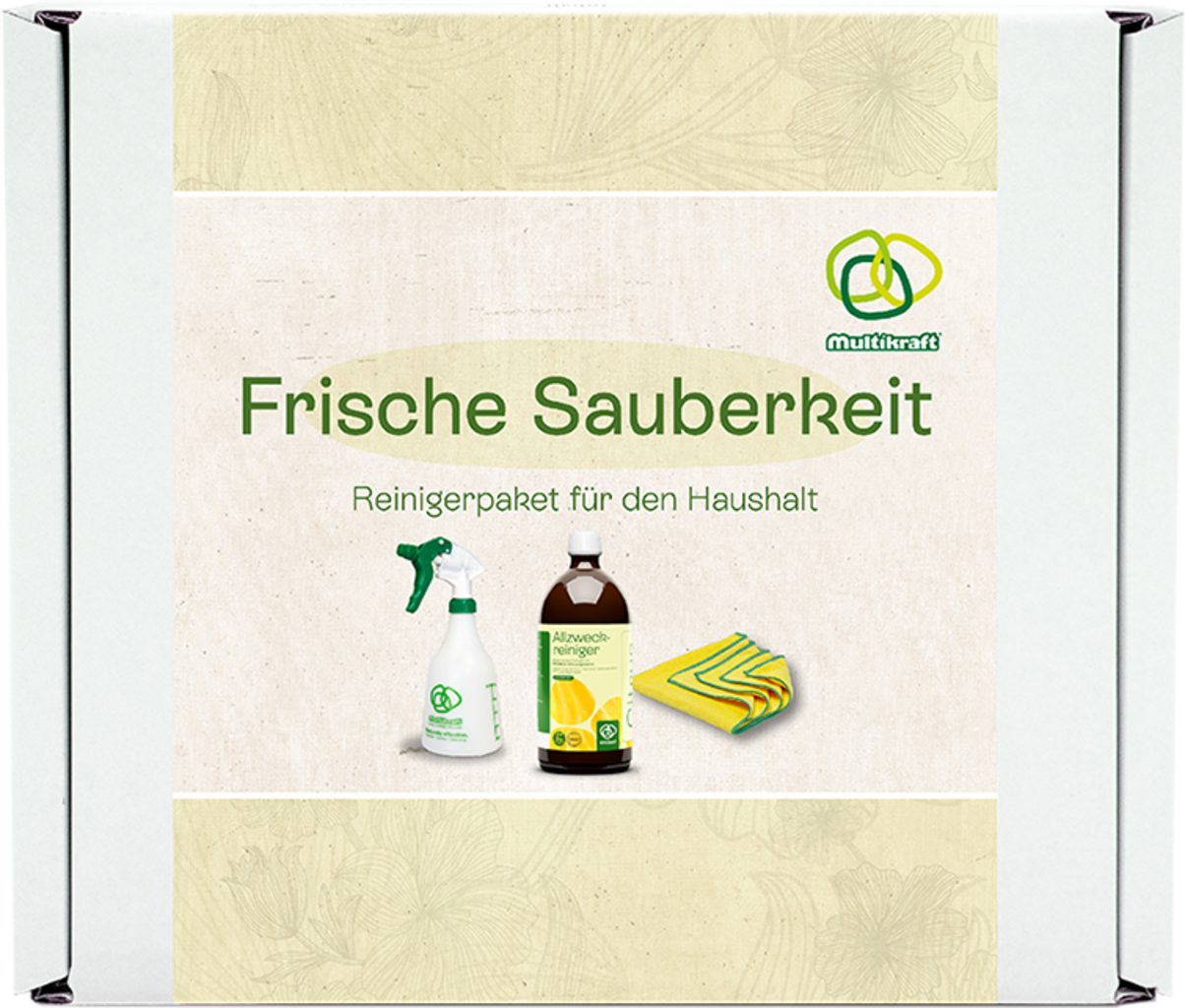 Multifunkcionalni set "Fresh Cleanliness" osigurava blistavu čistoću i svjež miris citrusa u cijelom domu. Probiotičko univerzalno sredstvo za čišćenje pouzdano uklanja prljavštinu, dok boca s raspršivačem i multifunkcionalna krpa pružaju savršene rezultate – jednostavno, praktično i štedljivo.