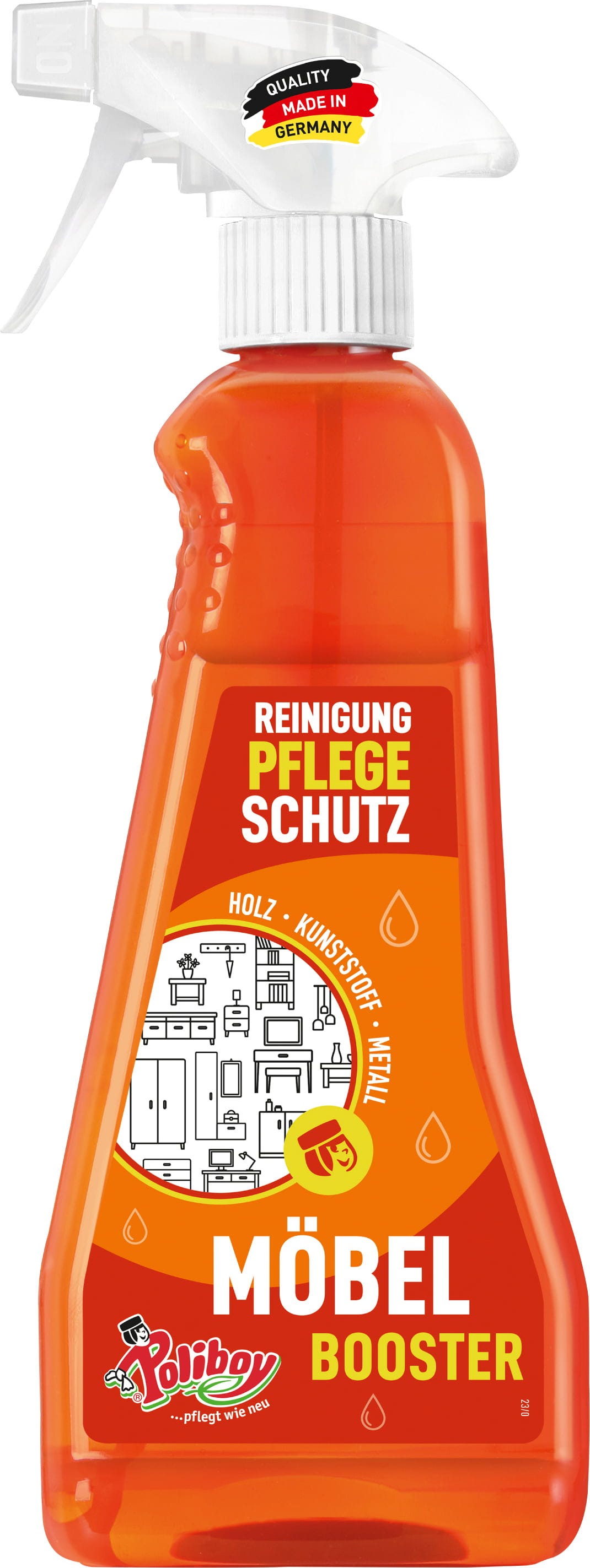 Sredstvo za osvježenje namještaja marke Poliboy osigurava njegu i zaštitu te vašem namještaju daje novu svježinu. Uklanja svakodnevnu prljavštinu, prašinu i mrlje s površina od plastike, drva i metala. Njegova formula redovitom uporabom osigurava dugovječnost i sjaj vašeg namještaja, kako biste u svom domu mogli uživati u dugotrajno lijepom ambijentu. Svjež, ljetni miris pruža zadovoljstvo pri čišćenju i stvara ugodnu atmosferu.