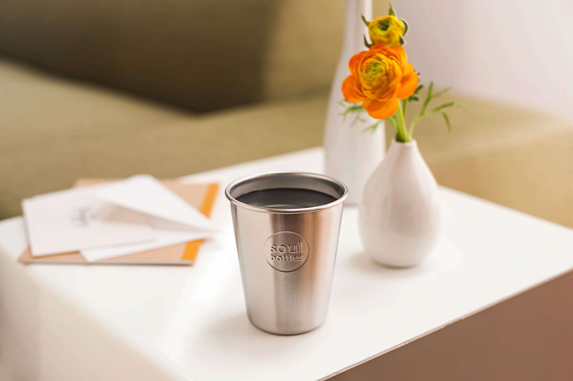 Šalice su izrađene od nehrđajućeg čelika te su stoga neslomljive, a uz to su i vrlo lagane. Proizvedene su na klimatski neutralan i održiv način te zamjenjuju plastične čaše štetne za okoliš koje troše resurse i nemarno se bacaju nakon upotrebe.