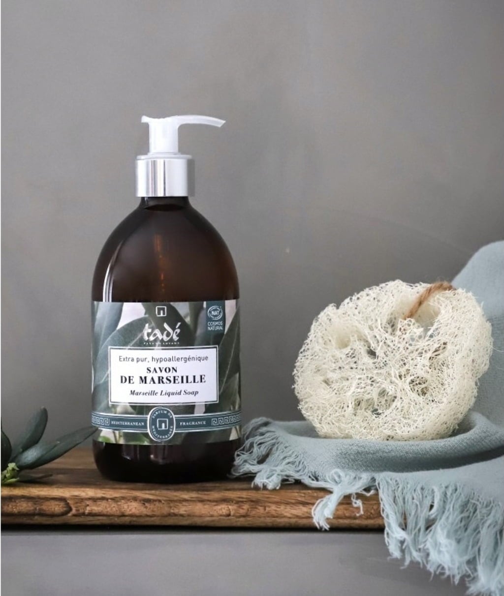 Ovaj Marseille tekući sapun ima hidratantni učinak i posebno je pogodan za osjetljive tipove kože. Tradicionalno se saponiziralo u kotlu i sastoji se od maslinovog ulja i organskog kokosovog ulja, koje je cijenjeno zbog dobrog stvaranja pjene pri saponifikaciji.