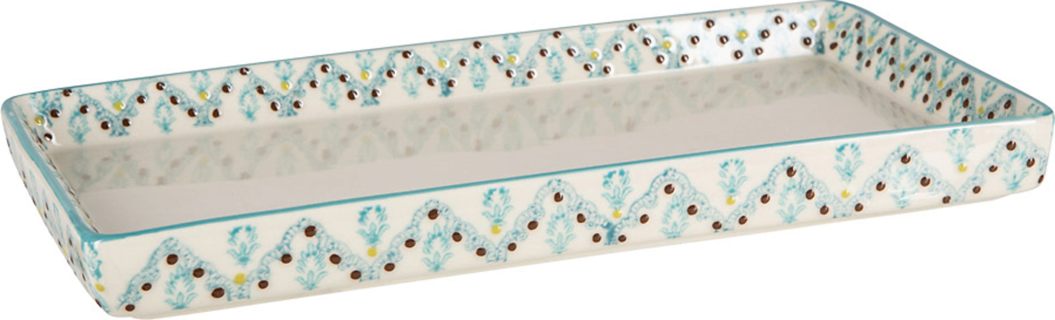 Pretvorite svoju kupaonicu u vlastitu wellness oazu! Lijepa kupaonska polica u orijentalnom dizajnu nije samo dekorativan detalj, već je i praktična za odlaganje svakodnevnih sitnica. Izrađena je od keramike i ručno je otisnuta.